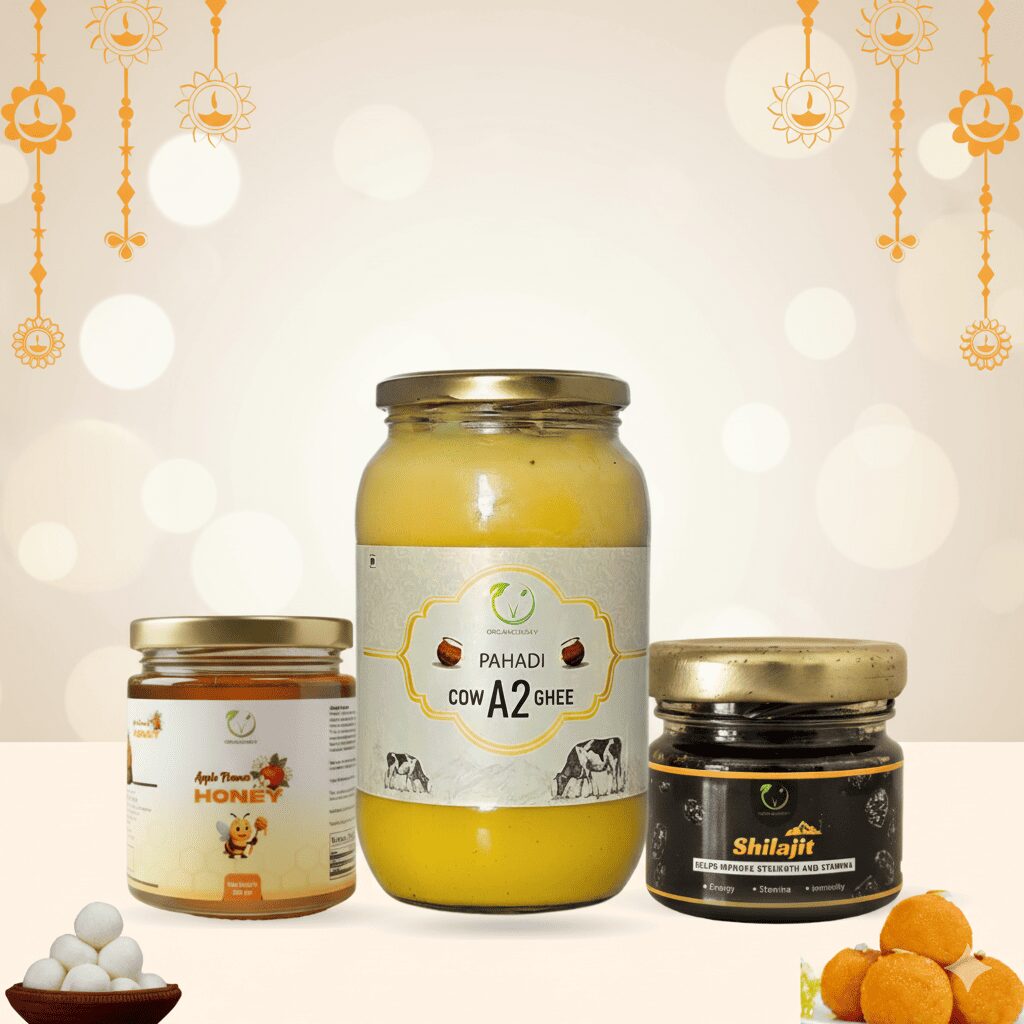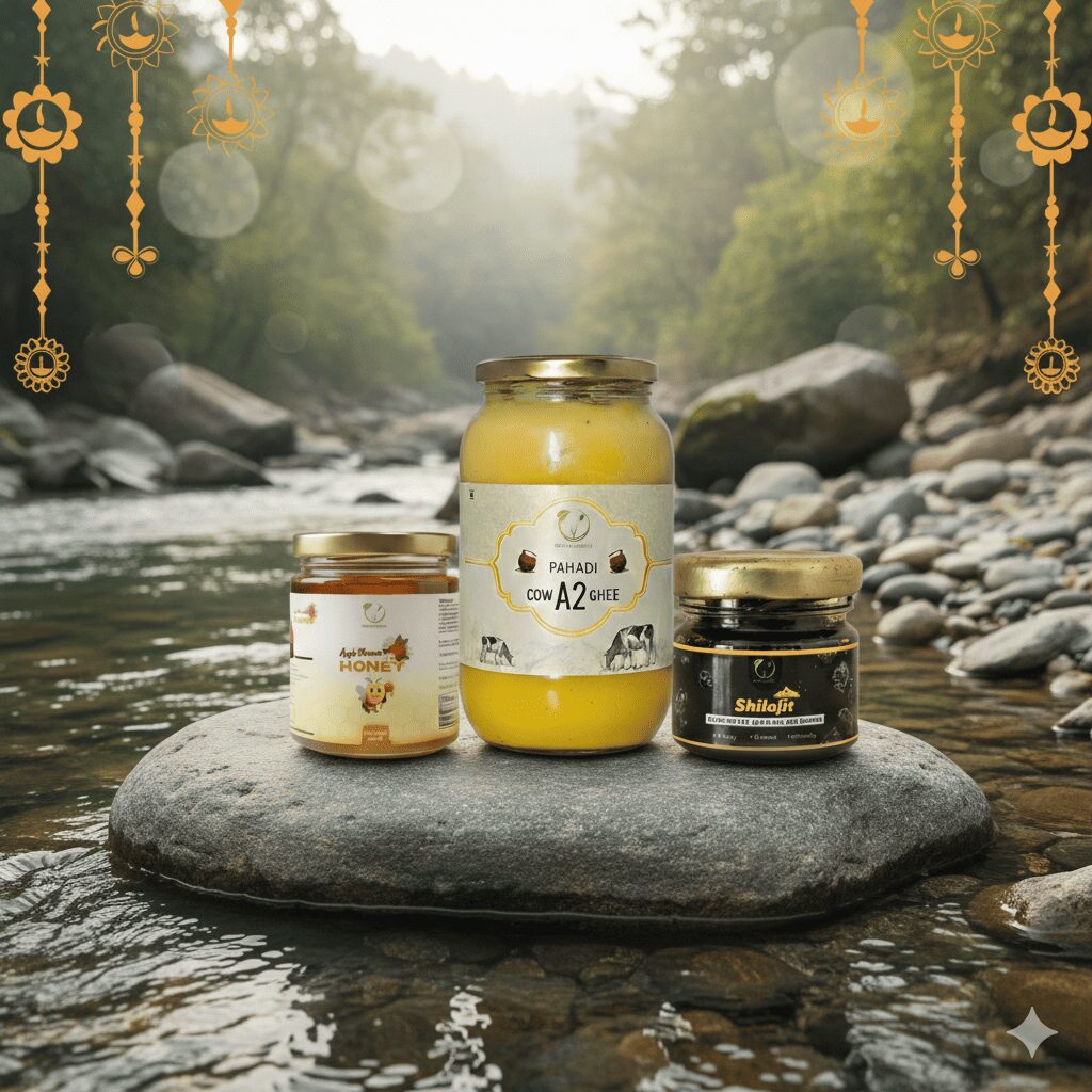Our Diwali Family Combo brings together three of nature’s finest treasures A2 Desi Ghee, Pure Himalayan Shilajit, and a jar of 100% natural Honey, absolutely free.